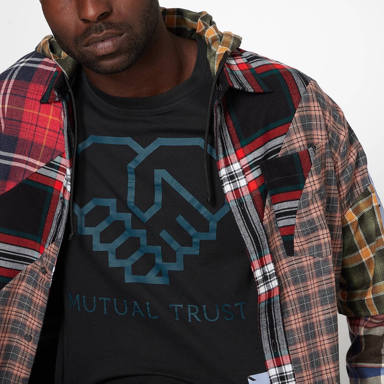 - Crew neck, short sleeves, 'MUTUAL TRUST' message with heart-shaped handshake graphic.